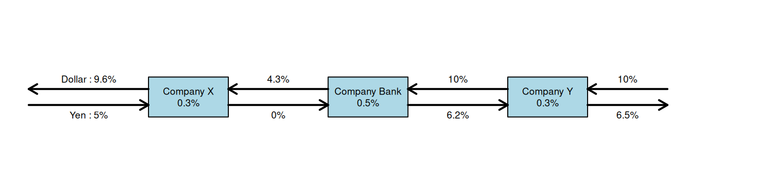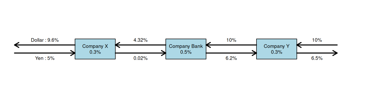 Company X wishes to borrow U.S. dollars at a fixed rate of interest. Company Y wishes to borrow Japanese yen at a fixed rate of interest. The amounts required by the two companies are roughly the same at the current exchange rate. The companies have been quoted the following interest rates, which have been adjusted for the impact of taxes: