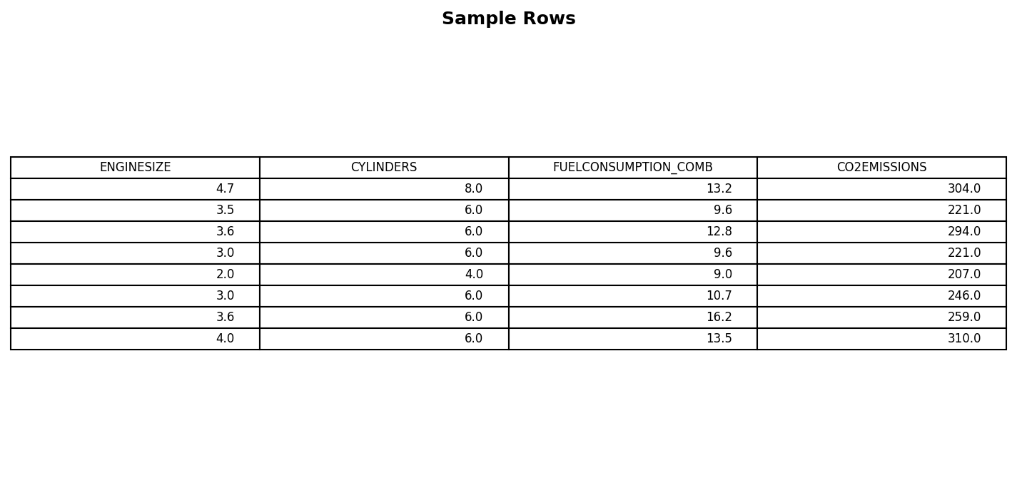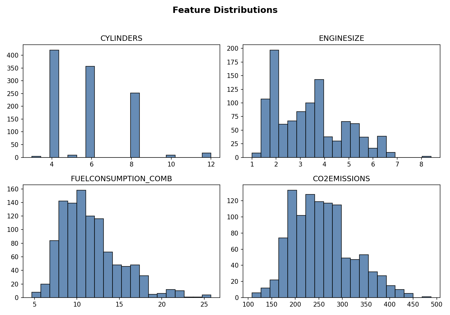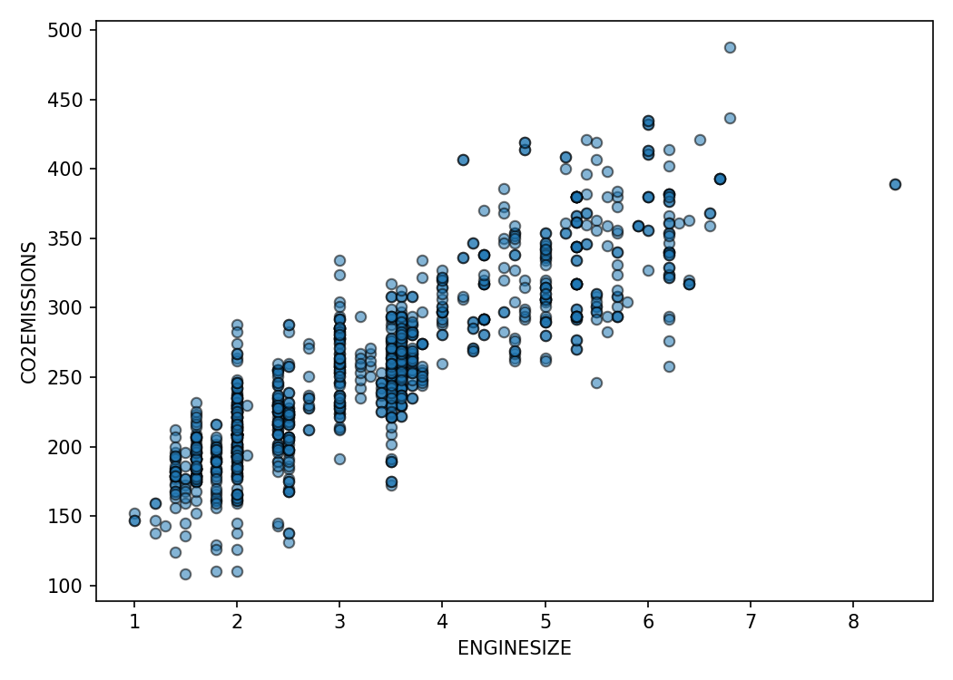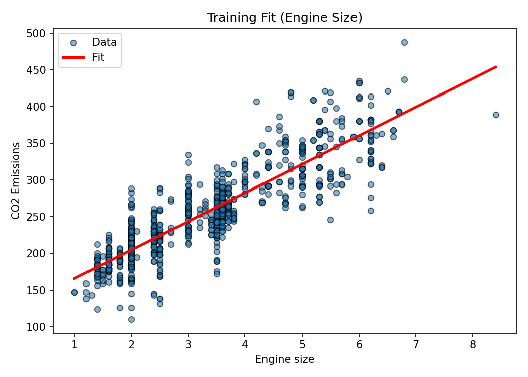 This article introduces simple linear regression by modeling CO₂ emissions from vehicle attributes. We explore the dataset, visualize feature relationships, build a regression model using engine size, evaluate it, and compare performance when using fuel consumption instead. Code is provided as static reference (non-executable here); plots are pre-rendered.