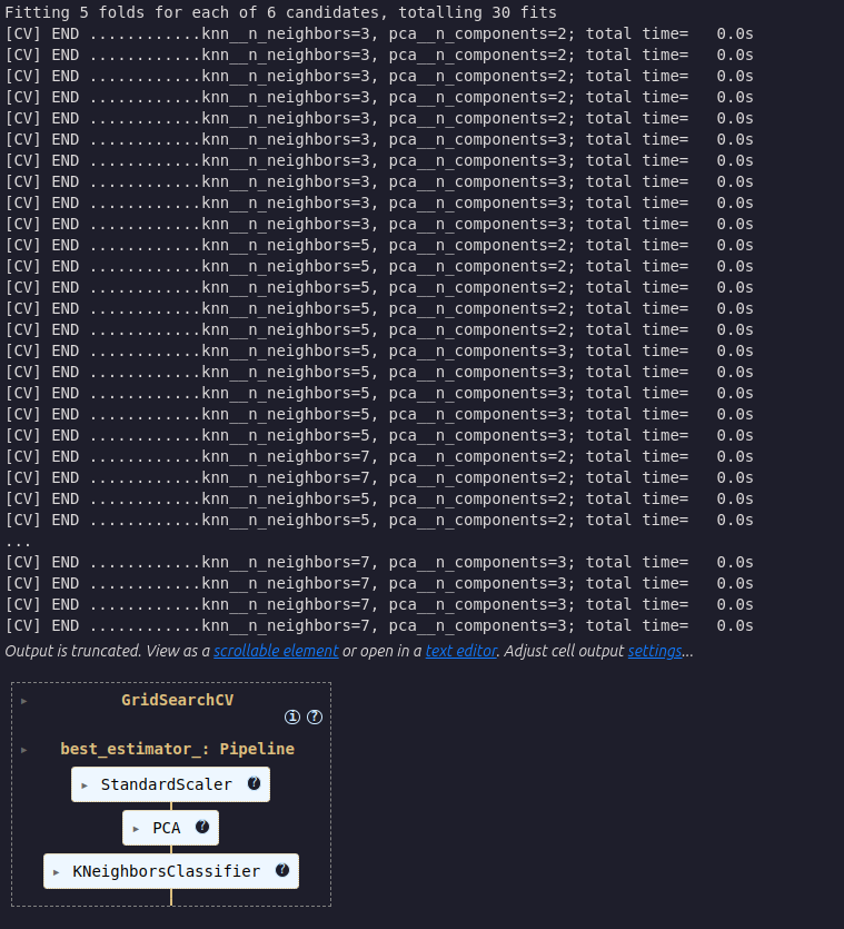 best_model.best_params_{’knn__n_neighbors’: 3, ’pca__n_components’: 2}